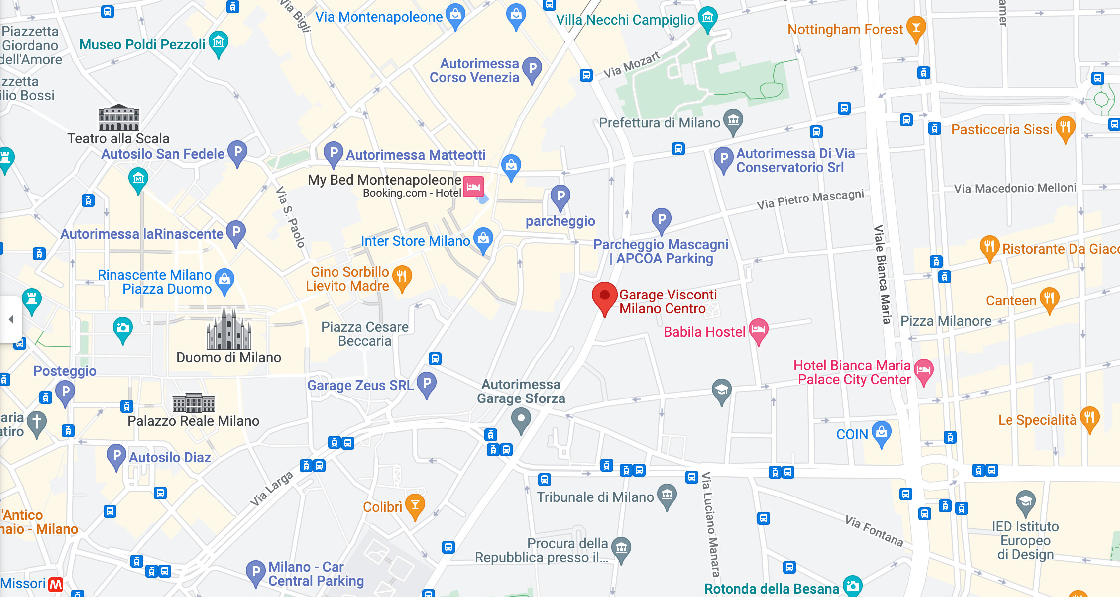 Il Garage Visconti si trova in Centro a Milano, all'interno dell'Area C.